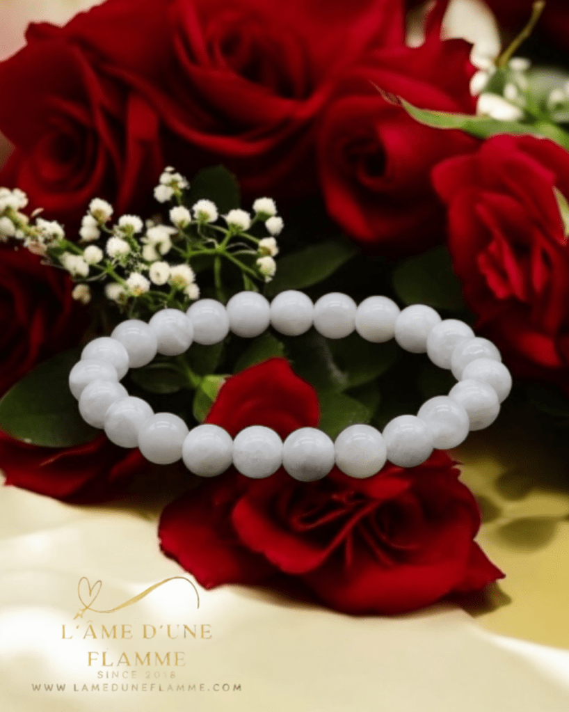 Ce bracelet en Pierre de Lune ‘AA’, disponible en plusieurs tailles (4 à 10 mm), soutient particulièrement les femmes dans leur quête de sérénité, notamment en période de transformation ou de transition émotionnelle.